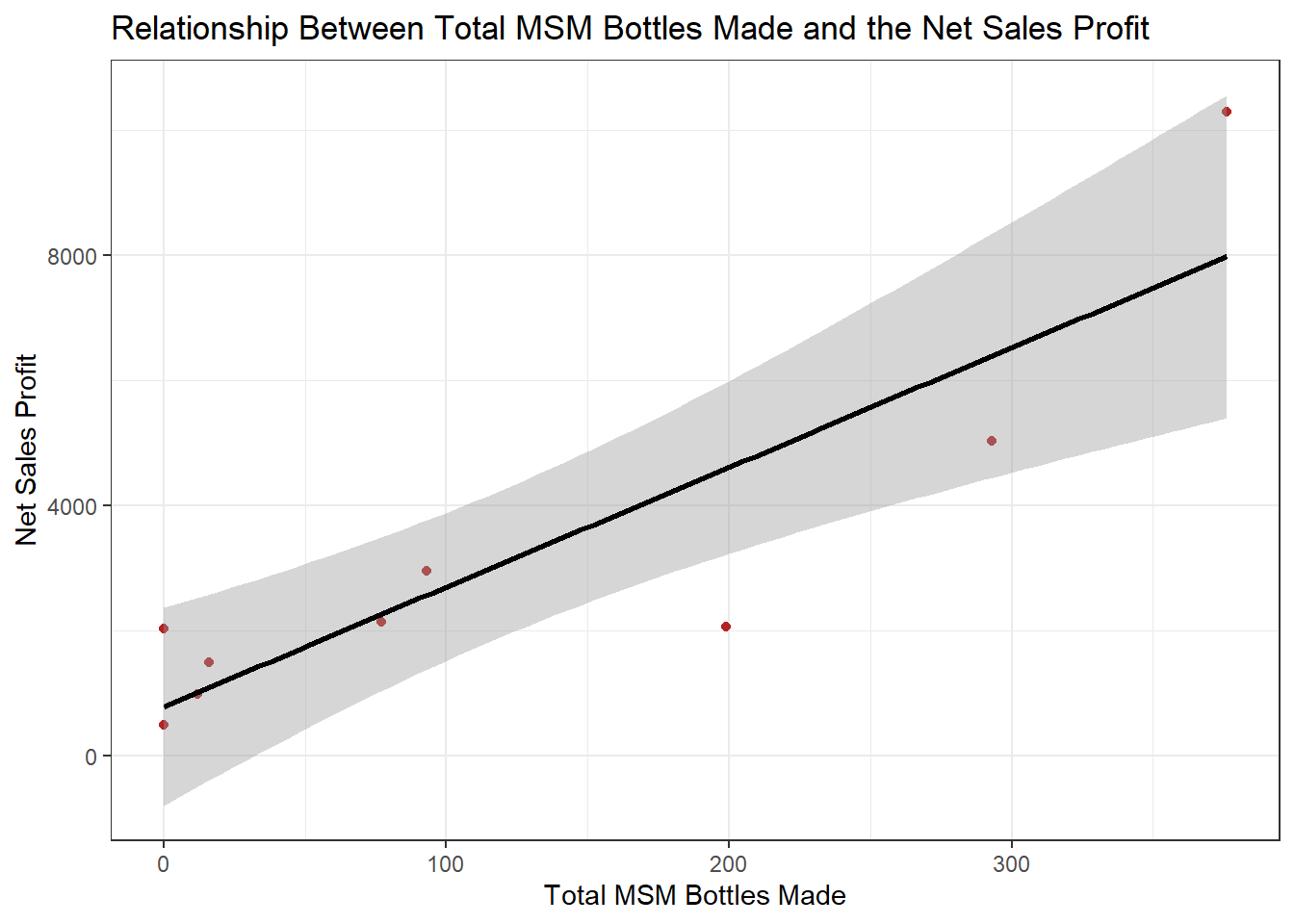 title = "Relationship Between Total MSM Bottles Made and the Net Sales Profit",