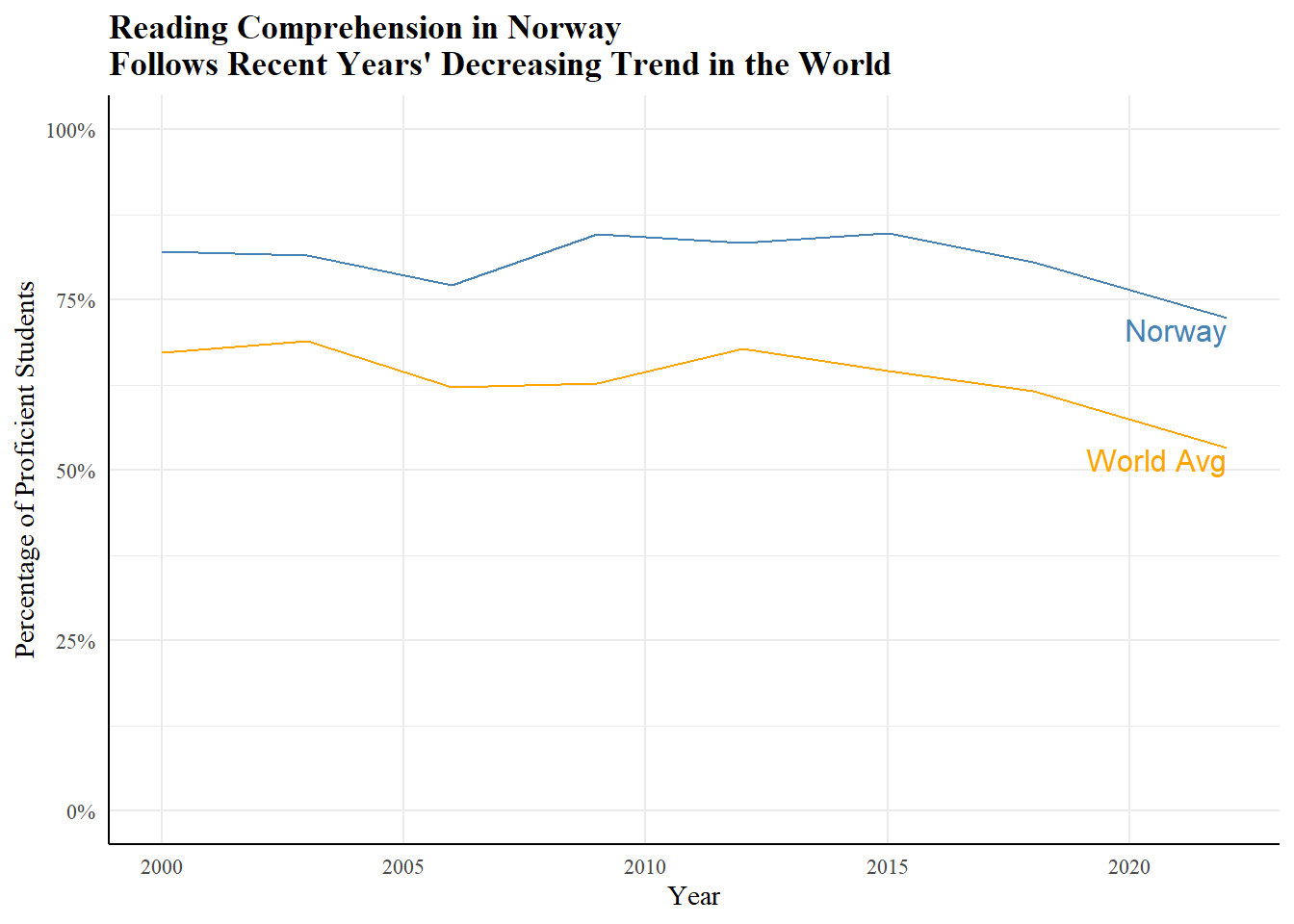 title = "Reading Comprehension in Norway \nFollows Recent Years' Decreasing Trend in the World",
